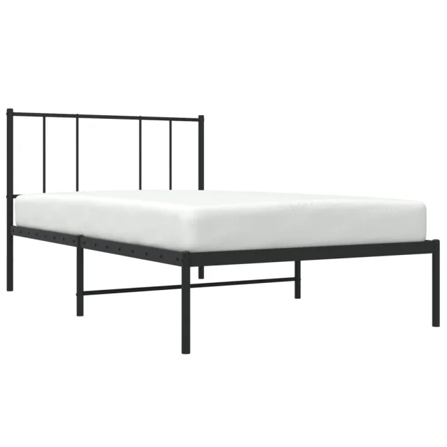 Kovinski Posteljni okvir - Enojna postelja - Postelja za odrasle z vzglavjem črn 100x190 cm