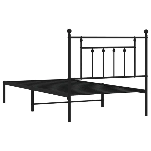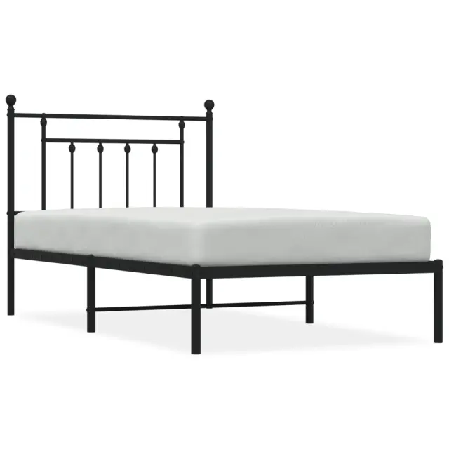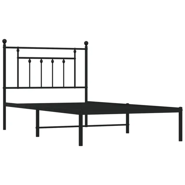 Kovinski Posteljni okvir - Enojna postelja - Postelja za odrasle z vzglavjem črn 100x190 cm