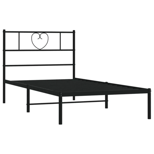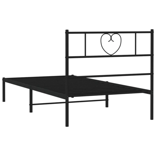 Kovinski Posteljni okvir - Enojna postelja - Postelja za odrasle z vzglavjem črn 100x200 cm