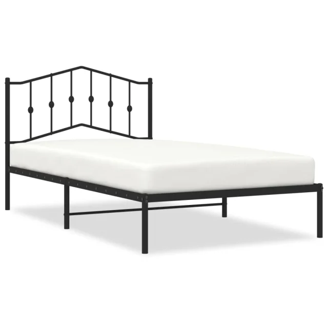 Kovinski Posteljni okvir - Enojna postelja - Postelja za odrasle z vzglavjem črn 107x203 cm