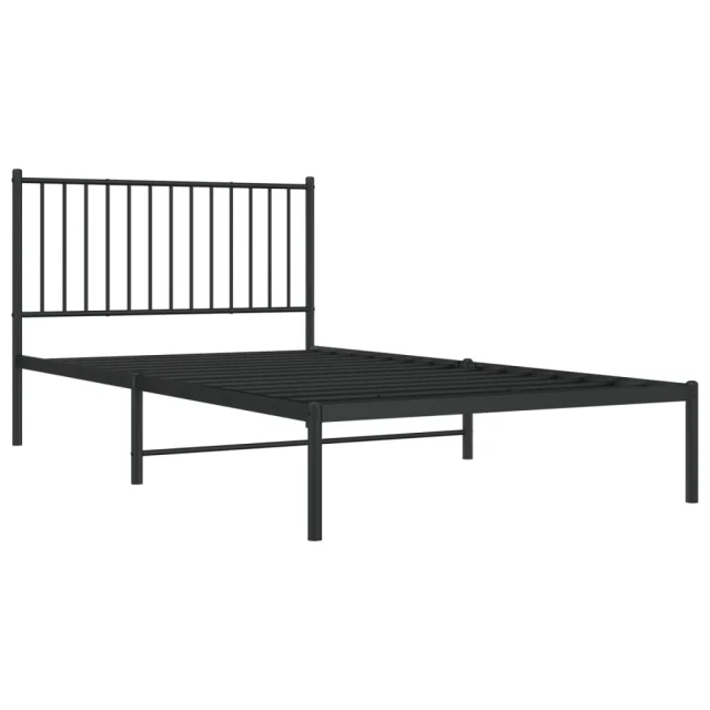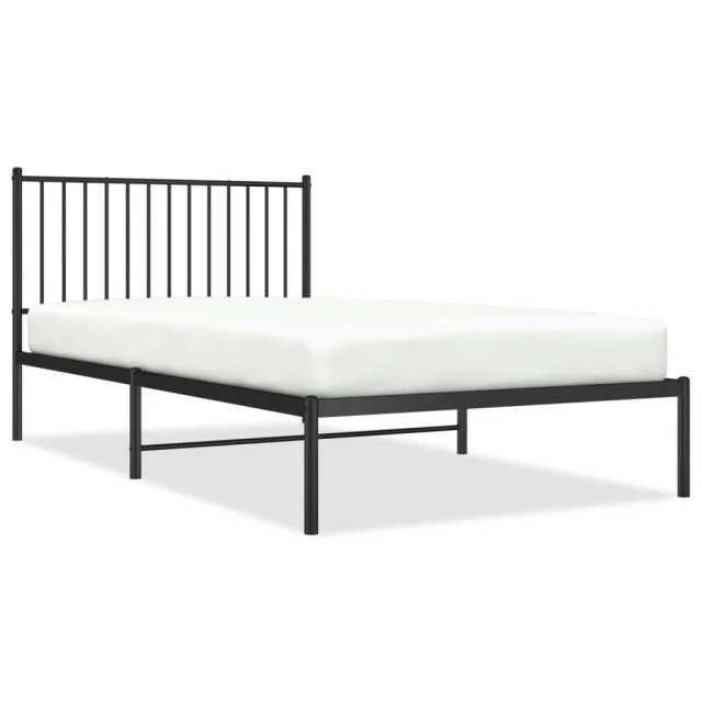 Kovinski Posteljni okvir - Enojna postelja - Postelja za odrasle z vzglavjem črn 107x203 cm