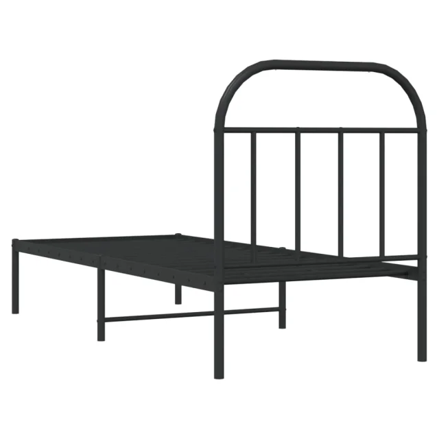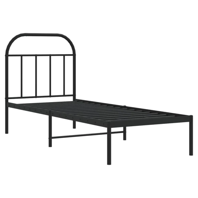 Kovinski Posteljni okvir - Enojna postelja - Postelja za odrasle z vzglavjem črn 75x190 cm