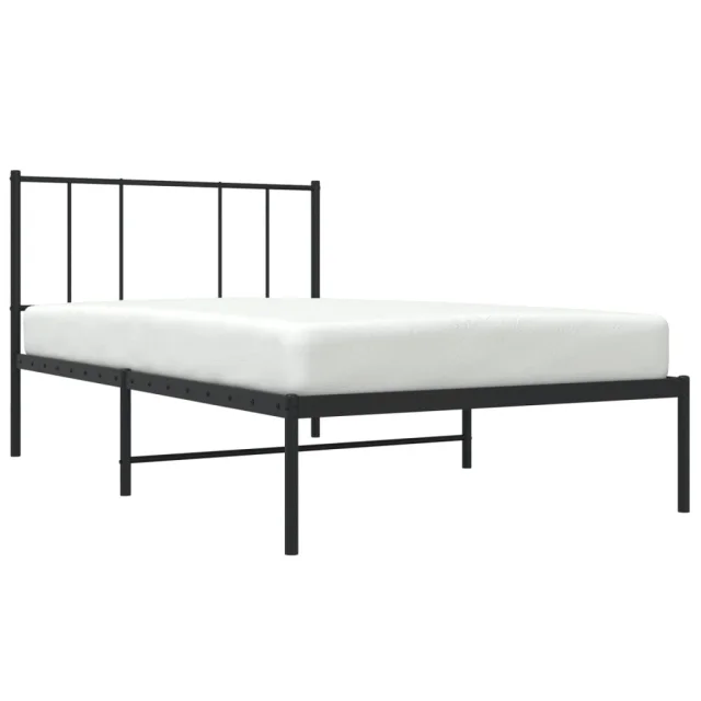 Kovinski Posteljni okvir - Enojna postelja - Postelja za odrasle z vzglavjem črn 75x190 cm
