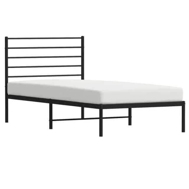 Kovinski Posteljni okvir - Enojna postelja - Postelja za odrasle z vzglavjem črn 80x200 cm