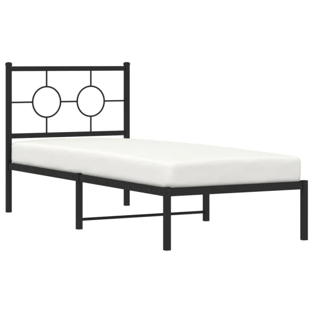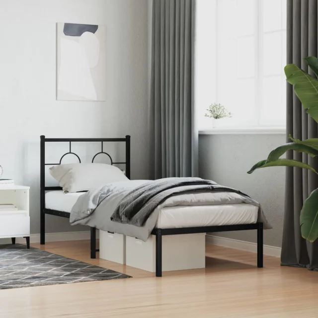 Kovinski Posteljni okvir - Enojna postelja - Postelja za odrasle z vzglavjem črn 80x200 cm