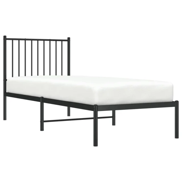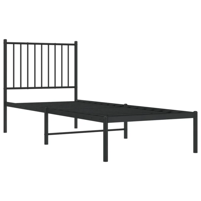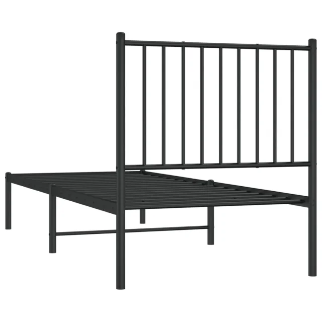 Kovinski Posteljni okvir - Enojna postelja - Postelja za odrasle z vzglavjem črn 80x200 cm