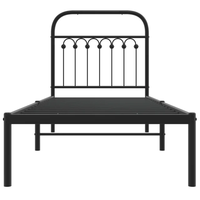 Kovinski Posteljni okvir - Enojna postelja - Postelja za odrasle z vzglavjem črn 80x200 cm