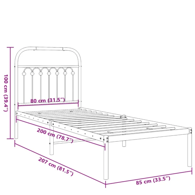 • Celotne dimenzije postelje: 207 x 85 x 100 cm (D x Š x V)