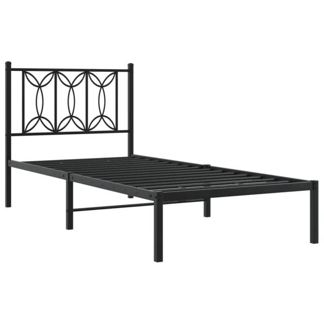 Kovinski Posteljni okvir - Enojna postelja - Postelja za odrasle z vzglavjem črn 80x200 cm