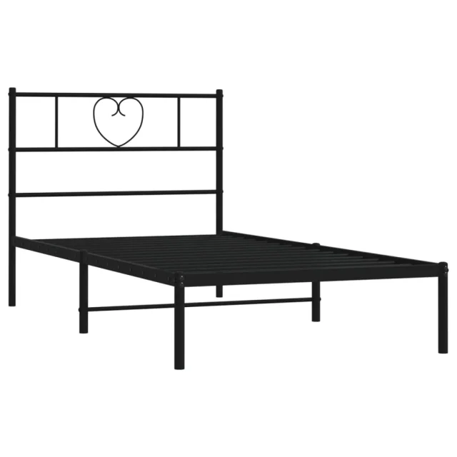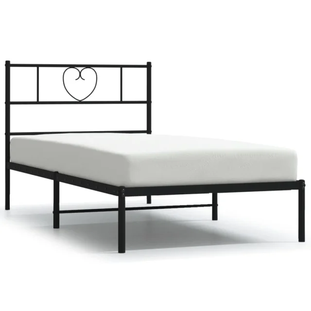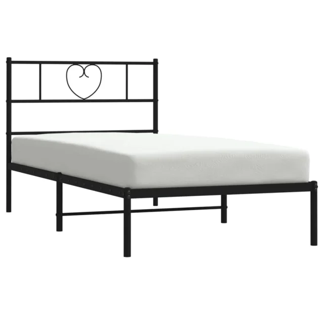 Kovinski Posteljni okvir - Enojna postelja - Postelja za odrasle z vzglavjem črn 90x190 cm