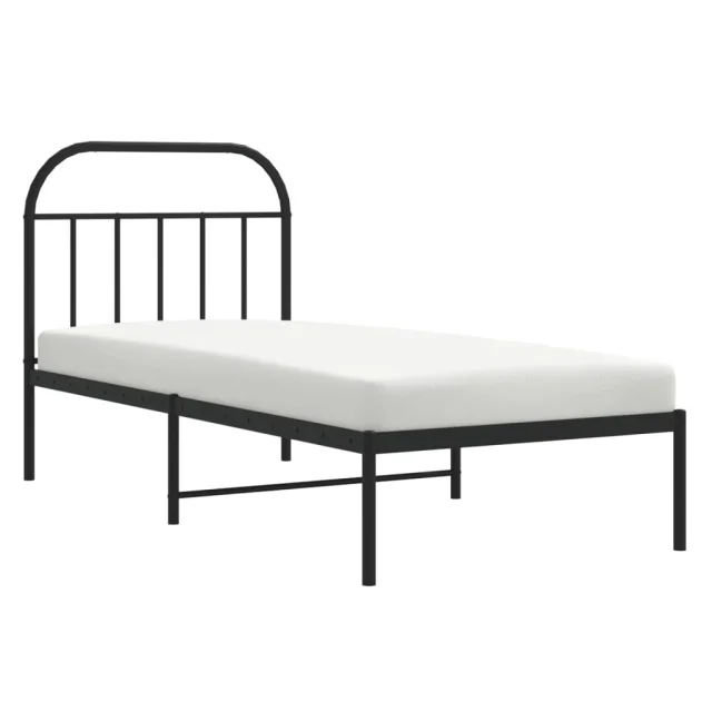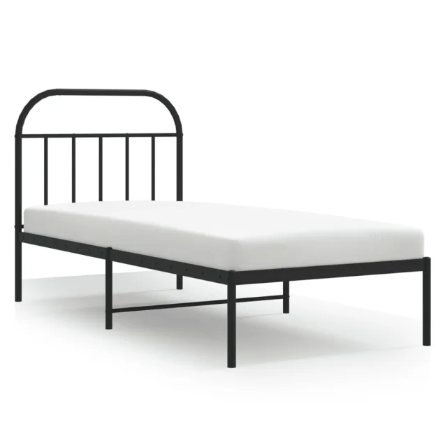 Kovinski Posteljni okvir - Enojna postelja - Postelja za odrasle z vzglavjem črn 90x190 cm