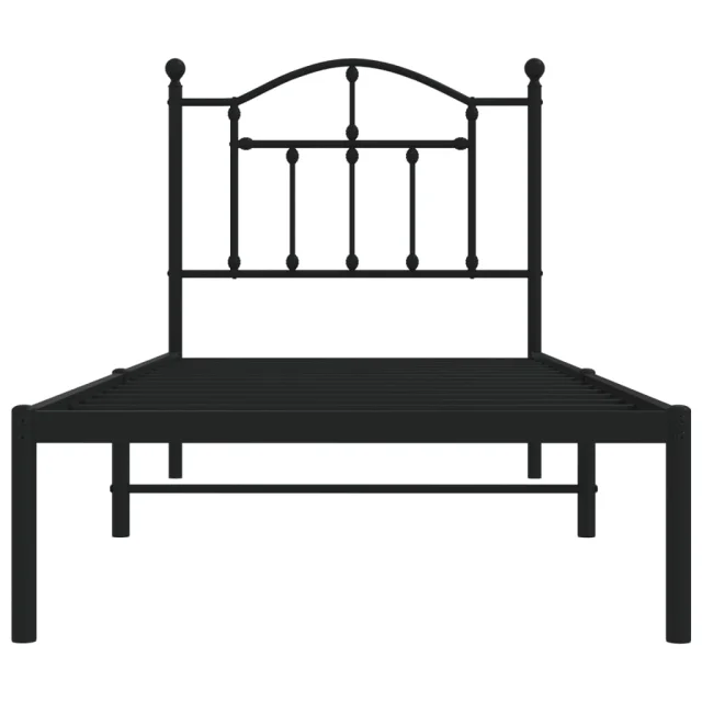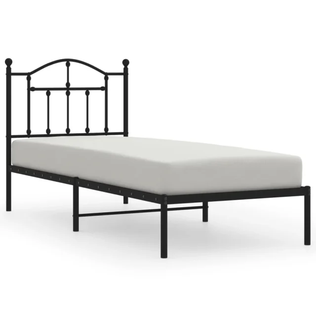 Kovinski Posteljni okvir - Enojna postelja - Postelja za odrasle z vzglavjem črn 90x190 cm