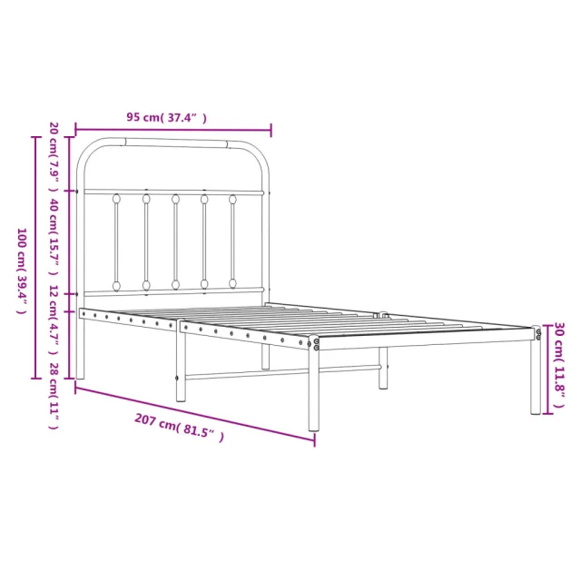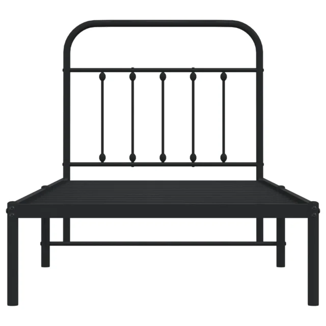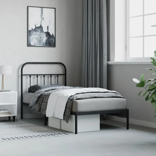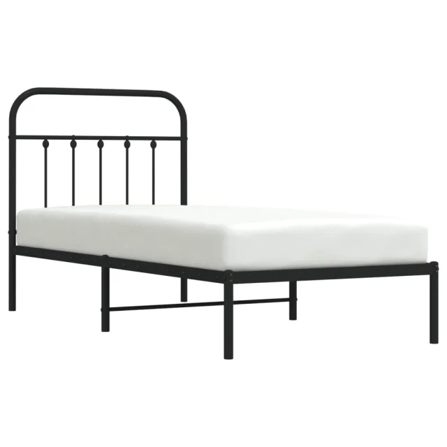 Kovinski Posteljni okvir - Enojna postelja - Postelja za odrasle z vzglavjem črn 90x200 cm