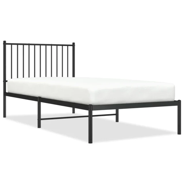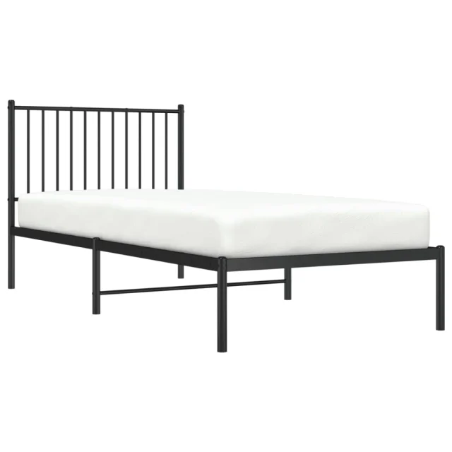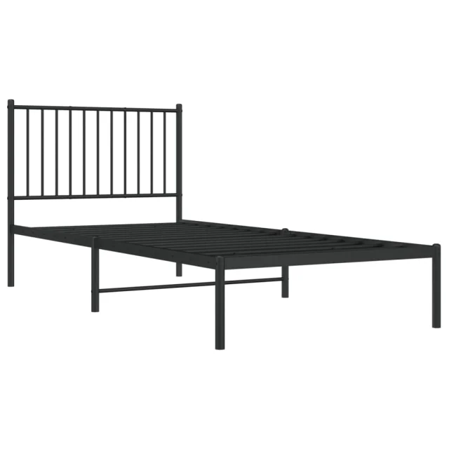 Kovinski Posteljni okvir - Enojna postelja - Postelja za odrasle z vzglavjem črn 90x200 cm