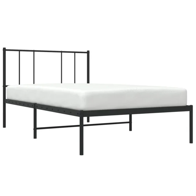 Kovinski Posteljni okvir - Enojna postelja - Postelja za odrasle z vzglavjem črn 90x200 cm