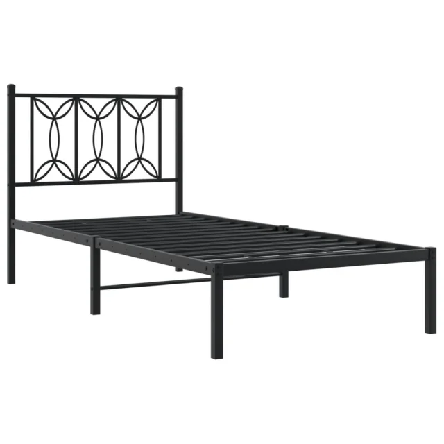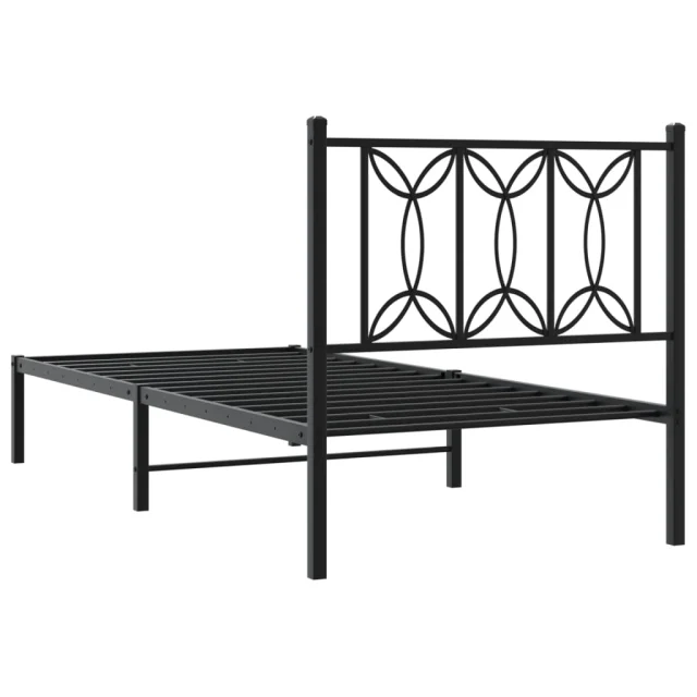 Kovinski Posteljni okvir - Enojna postelja - Postelja za odrasle z vzglavjem črn 90x200 cm