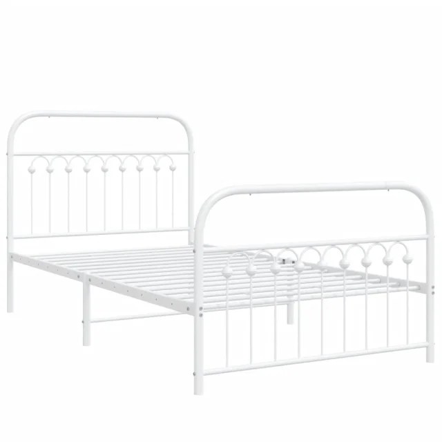 Kovinski Posteljni okvir - Enojna postelja - Postelja za odrasle z vzglavjem in vznožjem bel 100x190 cm