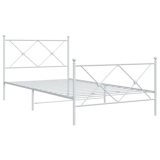 Kovinski Posteljni okvir - Enojna postelja - Postelja za odrasle z vzglavjem in vznožjem bel 100x200 cm