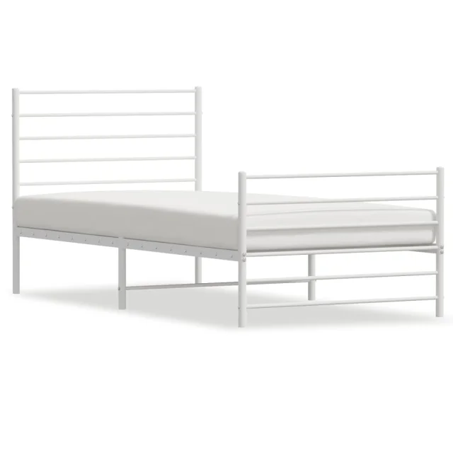 Kovinski Posteljni okvir - Enojna postelja - Postelja za odrasle z vzglavjem in vznožjem bel 100x200 cm