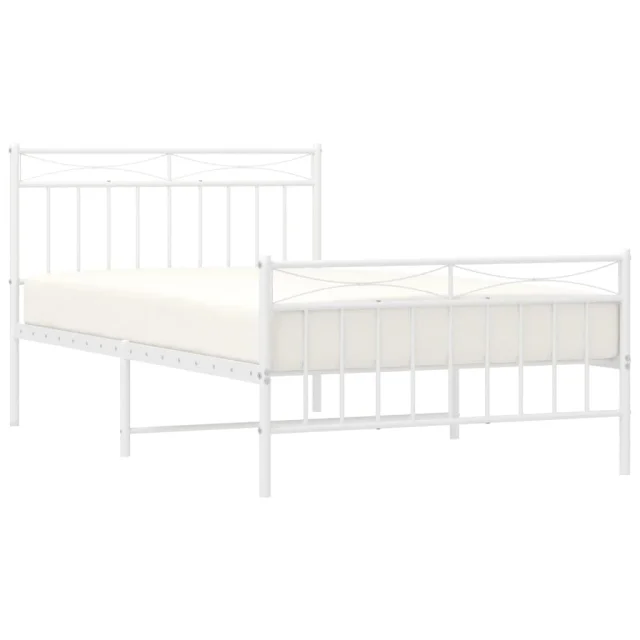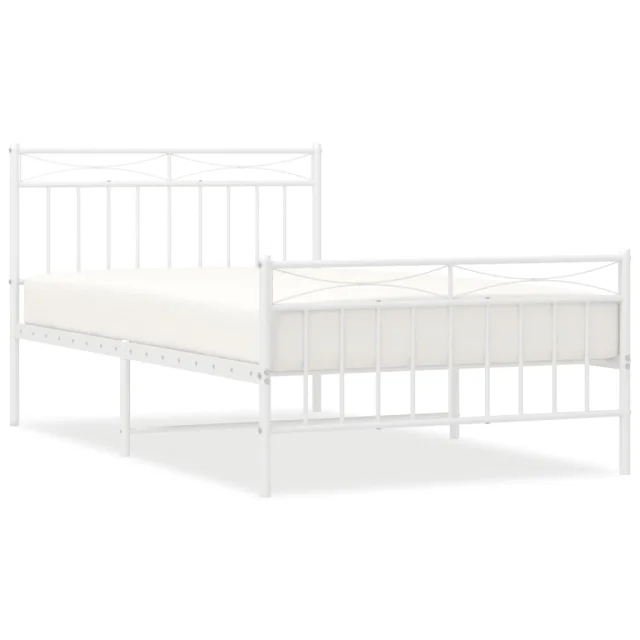Kovinski Posteljni okvir - Enojna postelja - Postelja za odrasle z vzglavjem in vznožjem bel 107x203 cm