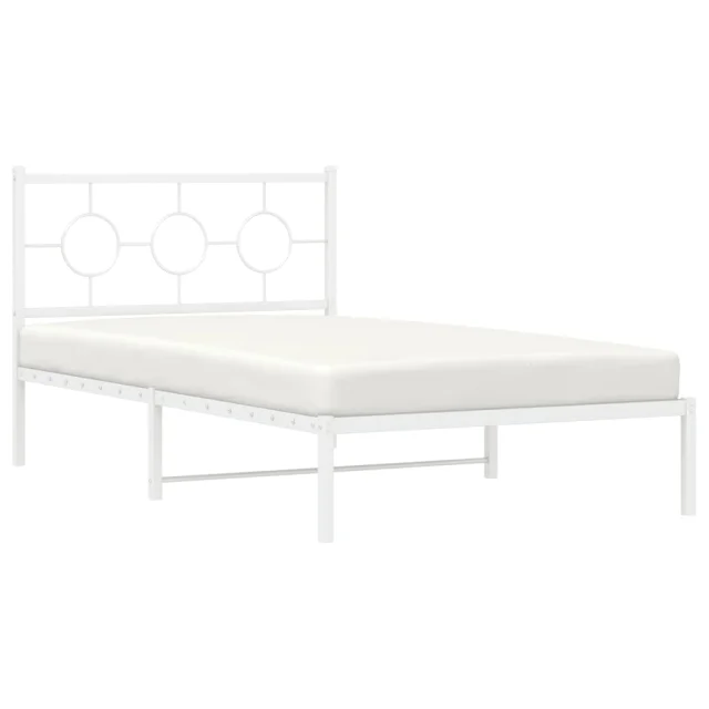 Kovinski Posteljni okvir - Enojna postelja - Postelja za odrasle z vzglavjem in vznožjem bel 107x203 cm