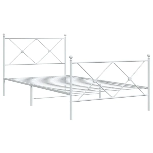 Kovinski Posteljni okvir - Enojna postelja - Postelja za odrasle z vzglavjem in vznožjem bel 107x203 cm