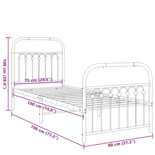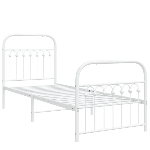Kovinski Posteljni okvir - Enojna postelja - Postelja za odrasle z vzglavjem in vznožjem bel 75x190 cm