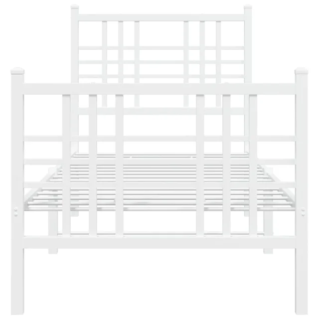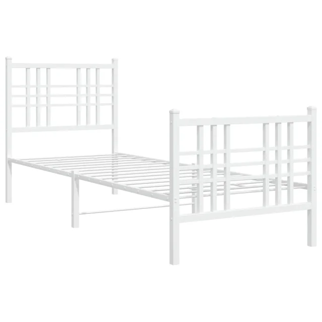 Kovinski Posteljni okvir - Enojna postelja - Postelja za odrasle z vzglavjem in vznožjem bel 75x190 cm