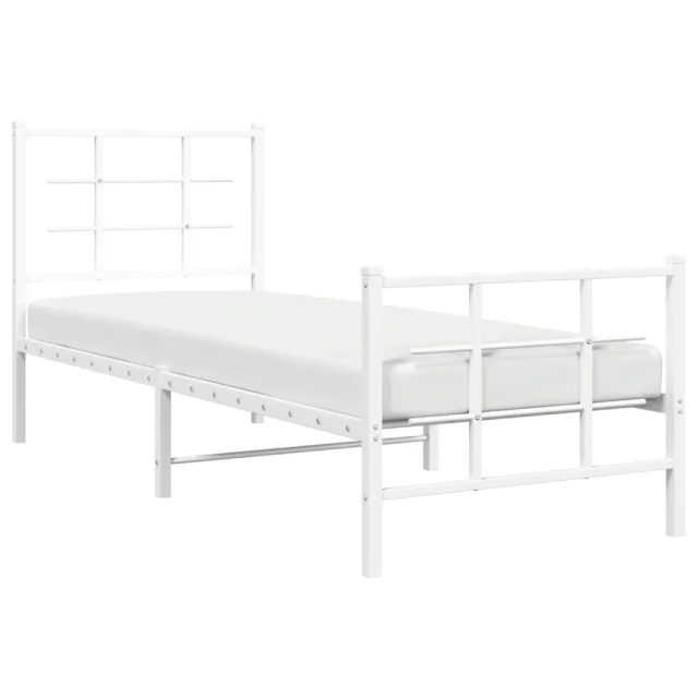 Kovinski Posteljni okvir - Enojna postelja - Postelja za odrasle z vzglavjem in vznožjem bel 75x190 cm