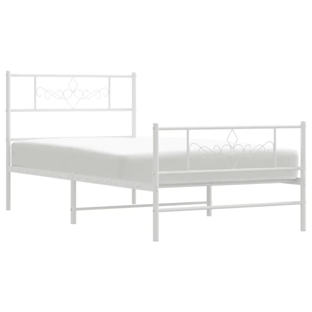 Kovinski Posteljni okvir - Enojna postelja - Postelja za odrasle z vzglavjem in vznožjem bel 75x190 cm