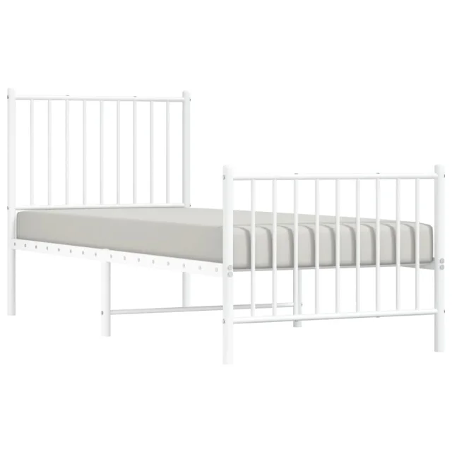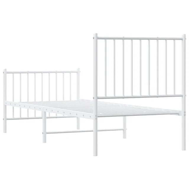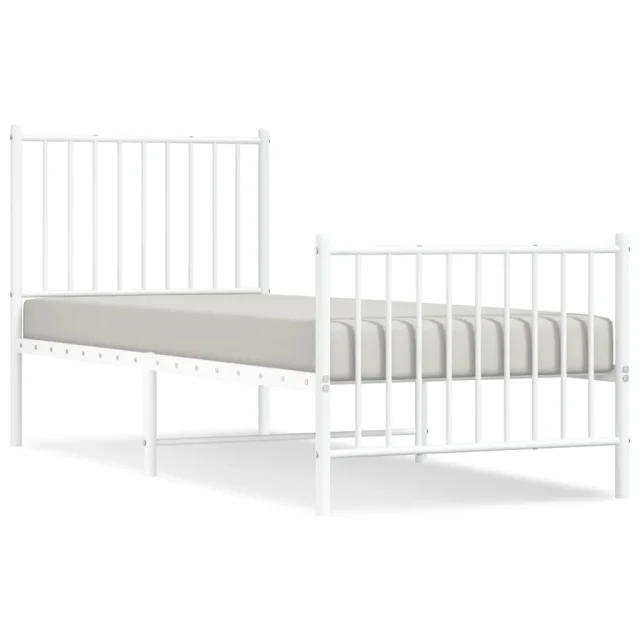 Kovinski Posteljni okvir - Enojna postelja - Postelja za odrasle z vzglavjem in vznožjem bel 80x200 cm
