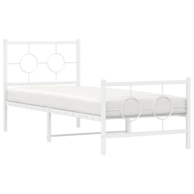 Kovinski Posteljni okvir - Enojna postelja - Postelja za odrasle z vzglavjem in vznožjem bel 80x200 cm