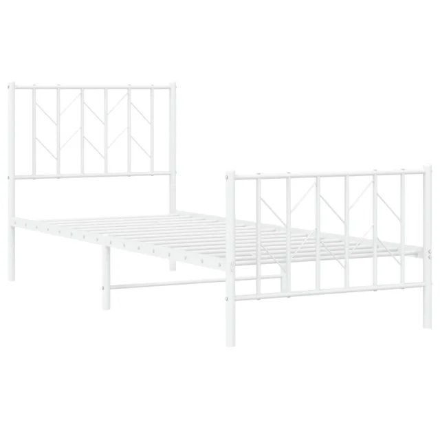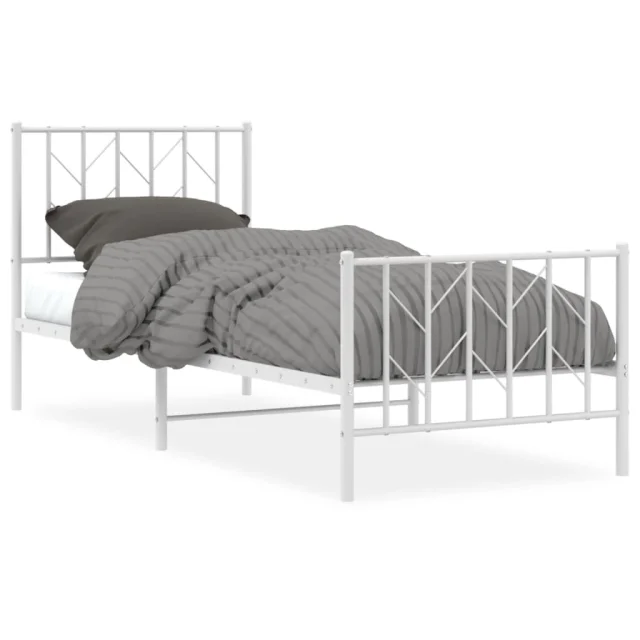 Kovinski Posteljni okvir - Enojna postelja - Postelja za odrasle z vzglavjem in vznožjem bel 80x200 cm