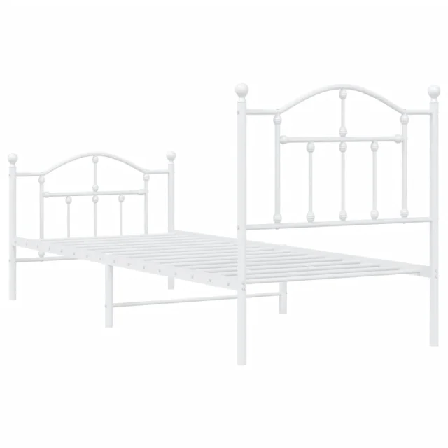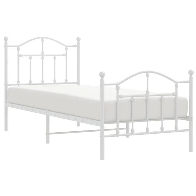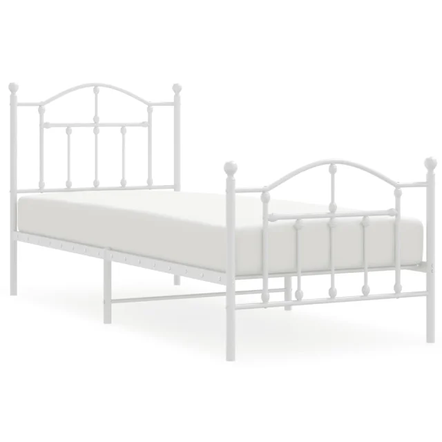 Kovinski Posteljni okvir - Enojna postelja - Postelja za odrasle z vzglavjem in vznožjem bel 90x190 cm