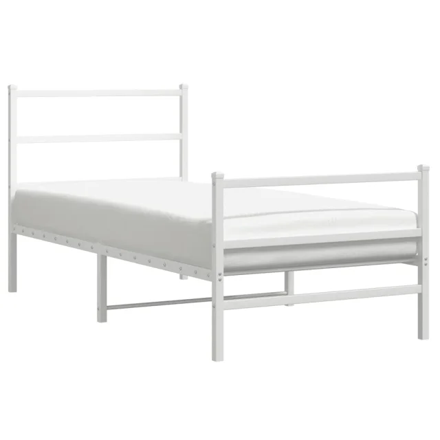Kovinski Posteljni okvir - Enojna postelja - Postelja za odrasle z vzglavjem in vznožjem bel 90x190 cm