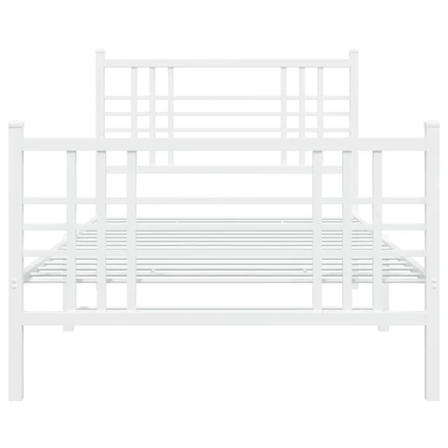 Kovinski Posteljni okvir - Enojna postelja - Postelja za odrasle z vzglavjem in vznožjem bel 90x200 cm