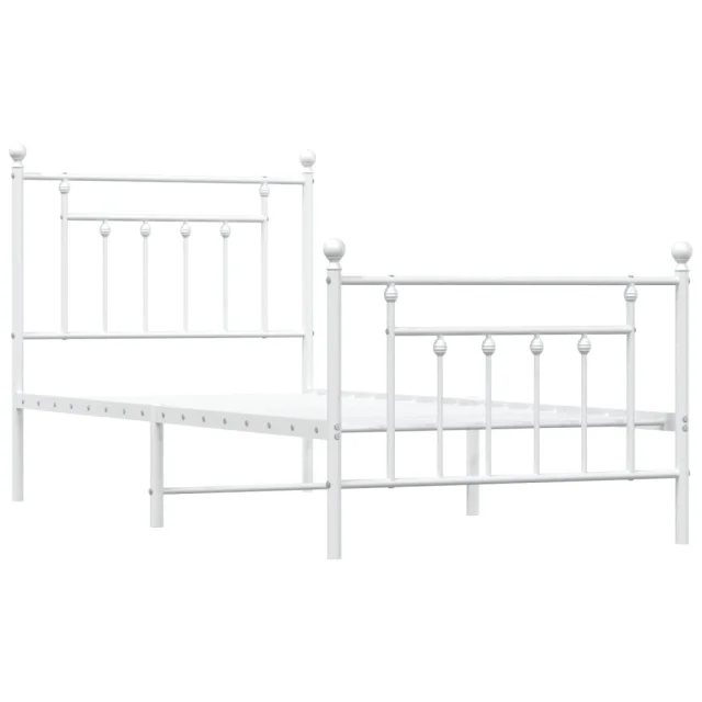 Kovinski Posteljni okvir - Enojna postelja - Postelja za odrasle z vzglavjem in vznožjem bel 90x200 cm