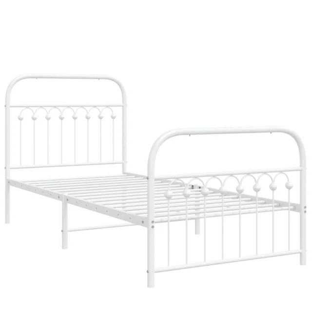 Kovinski Posteljni okvir - Enojna postelja - Postelja za odrasle z vzglavjem in vznožjem bel 90x200 cm