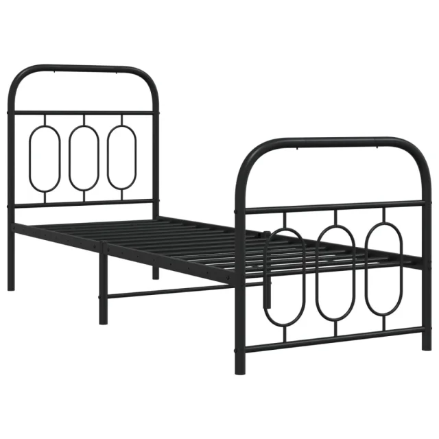 Kovinski Posteljni okvir - Enojna postelja - Postelja za odrasle z vzglavjem in vznožjem črn 75x190 cm