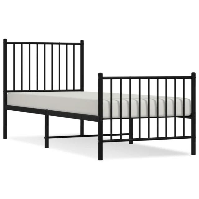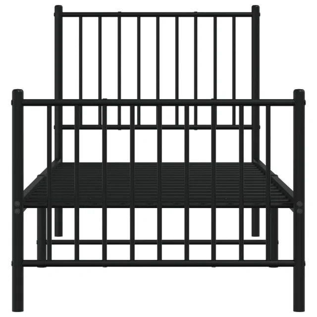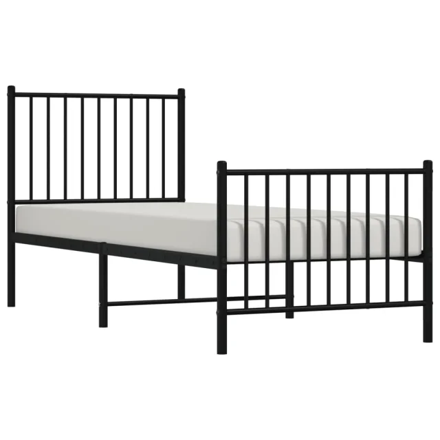 Kovinski Posteljni okvir - Enojna postelja - Postelja za odrasle z vzglavjem in vznožjem črn 75x190 cm