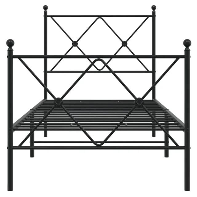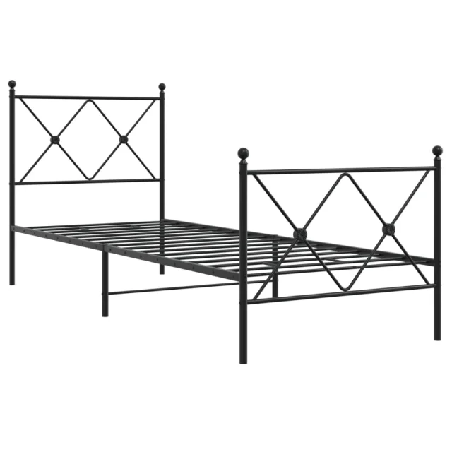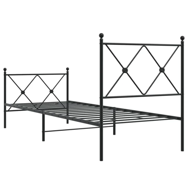 Kovinski Posteljni okvir - Enojna postelja - Postelja za odrasle z vzglavjem in vznožjem črn 75x190 cm