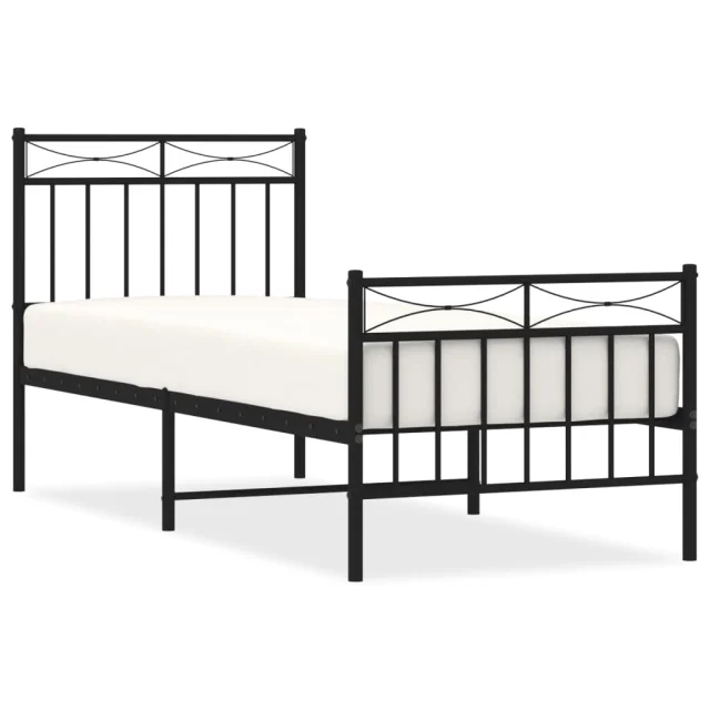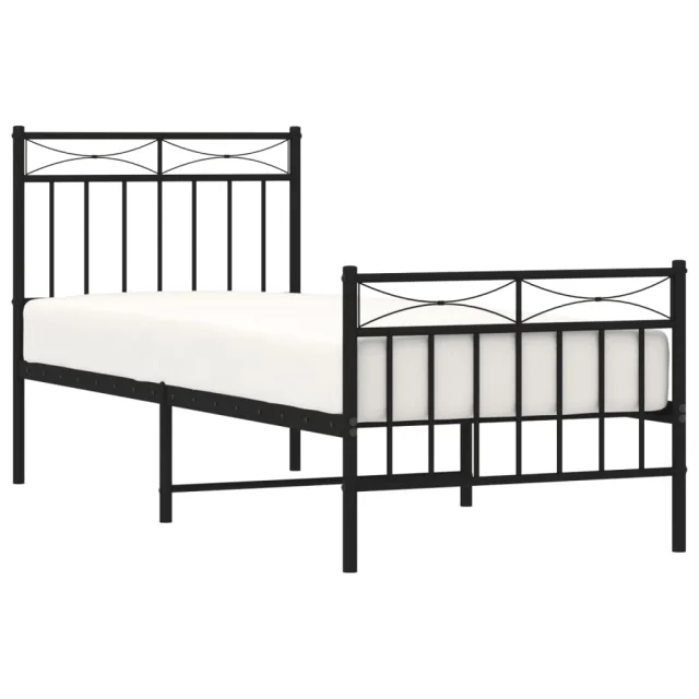 Kovinski Posteljni okvir - Enojna postelja - Postelja za odrasle z vzglavjem in vznožjem črn 80x200 cm
