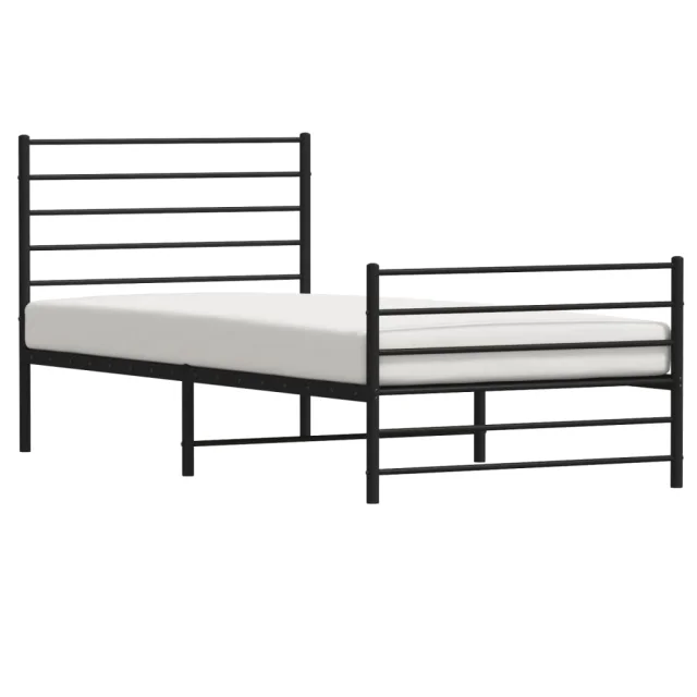 Kovinski Posteljni okvir - Enojna postelja - Postelja za odrasle z vzglavjem in vznožjem črn 90x190 cm