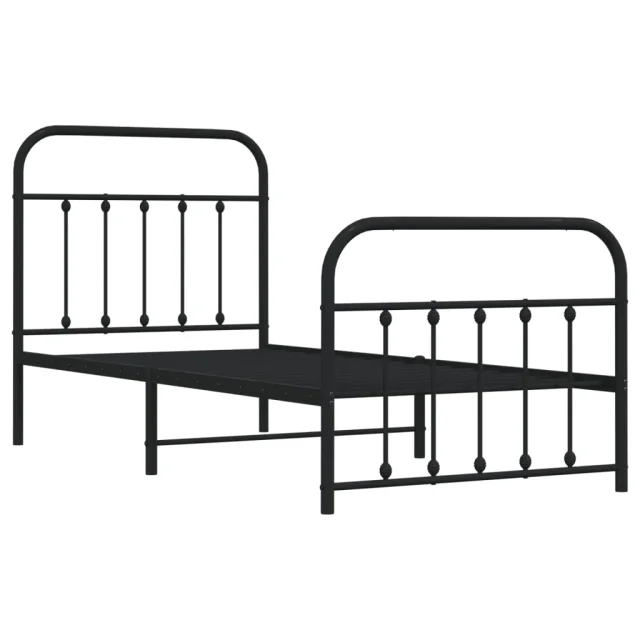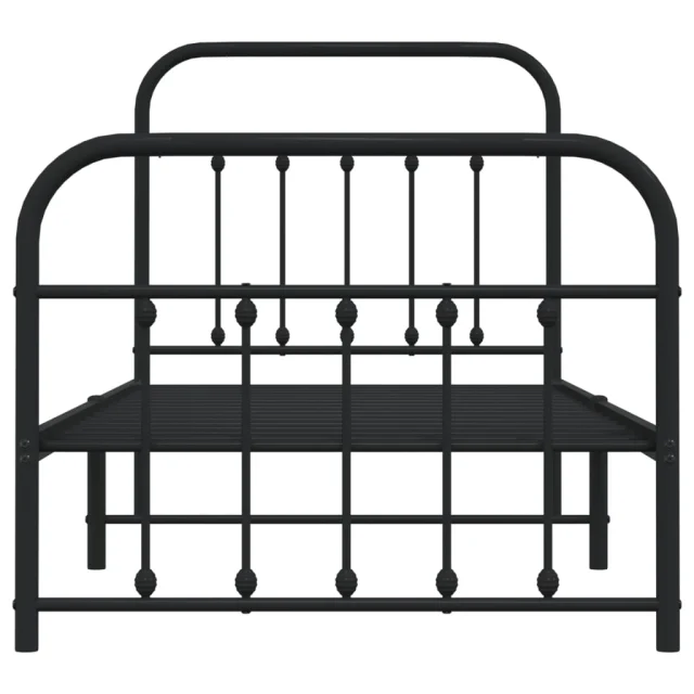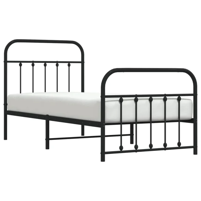 Kovinski Posteljni okvir - Enojna postelja - Postelja za odrasle z vzglavjem in vznožjem črn 90x190 cm