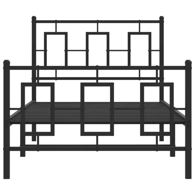 Kovinski Posteljni okvir - Enojna postelja - Postelja za odrasle z vzglavjem in vznožjem črn 90x200 cm