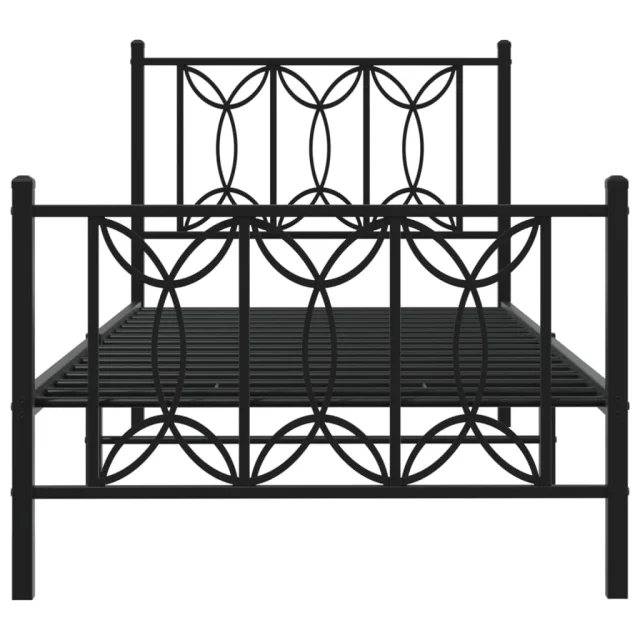 Kovinski Posteljni okvir - Enojna postelja - Postelja za odrasle z vzglavjem in vznožjem črn 90x200 cm