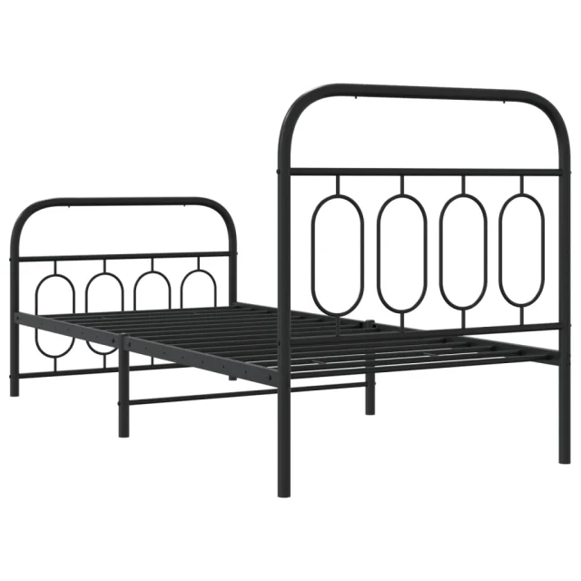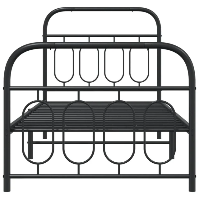 Kovinski Posteljni okvir - Enojna postelja - Postelja za odrasle z vzglavjem in vznožjem črn 90x200 cm