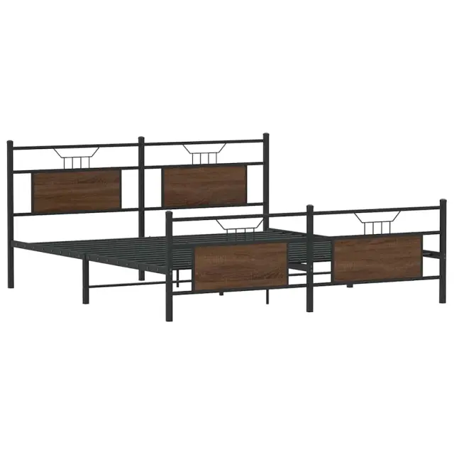 Zagotovite si boljši spanec s tem posteljnim okvirjem! Je prijeten dodatek za vsako spalnico. Stabilen in dolgotrajen okvir: Jeklo je močno, stabilno in trpežno, zato je idealna izbira za številne aplikacije, od proizvodnje pohištva do gradbeništva.Podnožje z letvami za optimalno podporo: Za podporo in zračnost ležišča je posteljni okvir opremljen z letvenim dnom.Stabilne in vzdržljive noge: Ta postelja ima trdne noge, ki zagotavljajo stabilnost, varnost in trdnost.Funkcionalno vzglavje in podnožje: Vzglavje in podnožje posteljnega dna ohranjata ležišče na mestu. Poleg tega vzglavje zagotavlja odlično oporo hrbtu, ko sedite v postelji in berete ali gledate televizijo.Dodaten prostor za shranjevanje: Za večje udobje je pod posteljo dodaten prostor, v katerem lahko shranite škatle za shranjevanje, da bodo lepo skrite. Dobro je vedeti:Vzmetnica ni priložena tej postelji. Ponujamo različno izbiro ležišč. V naši trgovini si lahko ogledate ustrezne vzmetnice.Barva: Rjav hrastMaterial: Jeklo, inženirski lesCelotne dimenzije: 219 x 188 x 91,5 cm (D x Š x V)Velikost primerne vzmetnice: 183 x 213 cm (Š x D) (vzmetnica ni priložena)Potrebno sestavljanje: Da