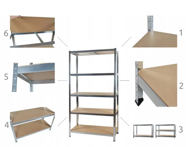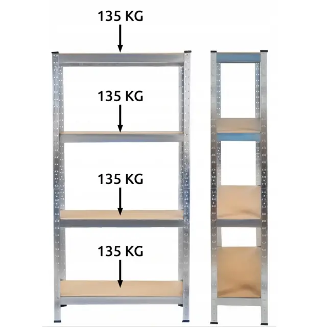 540 KG – največja obremenitev ene police je 135 kg! Kar skupaj znese do 540 kg – vanj lahko preprosto spravite vse vrste opreme ali številne druge izdelke. Knjižna omara je idealna za prostore, kot so klet, garaža, skladišče ali trgovina. Izdelan je iz pocinkanega jekla in debelih MDF plošč debeline 4 mm – to bo zagotovilo dolgoletno uporabo in popolno zadovoljstvo z izdelkom.