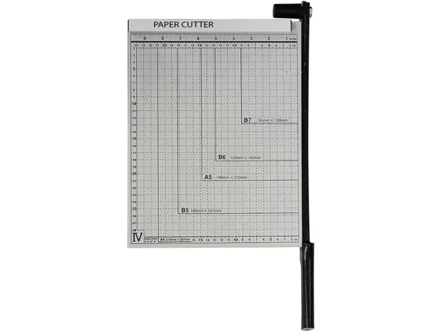 Visokokakovostno rezilo iz kaljenega jekla omogoča rezanje več velikosti papirja: A4, B5, A5, B6, B7. Ima zelo jasno merilno mrežo. Natančen omejevalnik za prilagajanje dimenzij reza in ergonomski ročaj, ki zagotavlja udobje pri delu, sta njegovi dodatni prednosti.
